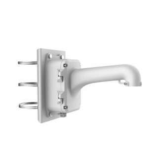 Supporto a palo per telecamere dome motorizzate. Adatto per esterni, pin cavo, lega di alluminio e acciaio, colore bianco. Diametro palo da 67 a 127 mm. Compatibile con Hikvision. Dimensioni: 240 x 206,8 x 465 mm.