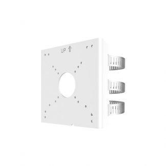 Supporto per palo per telecamere UNIVIEW PTZ. Adatto per esterni. Diametro 67~127 mm. Colore bianco. Passacavo. Dimensioni: 215 mm (L) x 172 (H) x 65 (P).