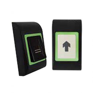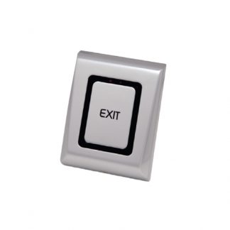 Pulsante capacitivo luminoso antivandalo con simbolo exit. Elettronica resinata. Retroilluminazione (rossa/verde per segnalazione avvenuto consenso). Consumo: 65mA max. Alimentazione 12/24 V dc - 15/24 V ac. Grado di protezione IP66. Dimensioni: 86x116x22mm.