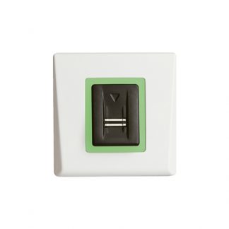 Unita' remota a rele' e pulsante di uscita ad incasso. Montaggio: incasso. Maschera: ABS (venduta separatamente). Colori: Argento, antracite, bianco. Tecnologia: Capacitiva. Output relè: 2 A/24 V AC/DC. Durata relè: Impulsiva (1 a 60sec) o Blocco (ON/OFF). Segnale visivo: LED rosso: normale, LED verde: relè in funzione. Input pulsante: 2. Tensione: 9-14 V DC. Consumo: Max. 100 mA. Grado IP: IP40. Dimensioni (L x A x P): 80 x 80 x 9 mm.