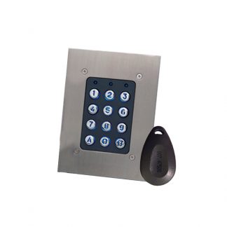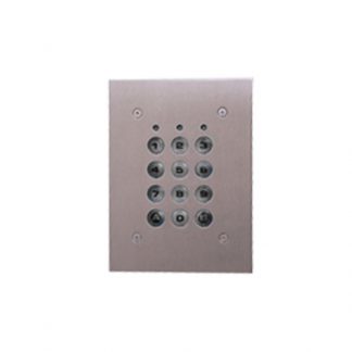 Tastiera ad incasso da 1000 codici stand alone tasti metallizzati. 1000 codici utenti, grado di protezione IP65, alimentazione 12/24 V cc/ca, uscita: a 2 relè (R1: 10A/24 VDC/ 120 VAC; R2: 2A/24 VDC/ 120 VAC); a 10 relè se usato con scheda RB0408, assorbimento: 10 mA in stand by e 60 mA in activity, tamper di protezione per anti manomissione, buzzer sonoro programmabile, 3 led colorati: 1 di funzionamento e 2 pilotabili, collegamento RS485, montaggio: incasso, contenitore: acciaio A316, colore: acciaio spazzolato, dimensioni: 140x105x39mm.