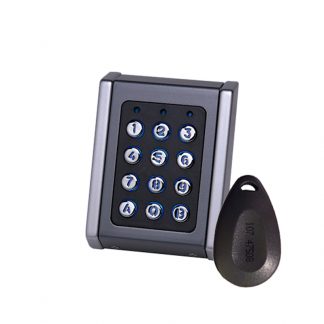 Tastiera in ABS STAND ALONE con possibilità di collegarsi in RS485 a 1 scheda relè remota. 1000 codici utenti. Grado di protezione IP65. 2 uscite relais (1x10A e 1x2A). Montaggio da interno e da esterno. Tamper di protezione per anti manomissione. Tasti metallici inox o in policarbonato (PVC) retroilluminati. Buzzer sonoro programmabile. 3 led colorati: 1 di funzionamento e 2 pilotabili. Dimensioni LxHxP 84x120x44mm. Alimentazione 12 Vcc/ca, max 60 mA.