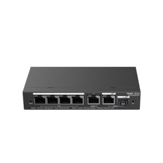 Reyee Switch PoE Cloud Gestibile Cloud Layer 2, 4 PORTE PoE 802.3af/at + 1 Uplink RJ45, 4 RJ45 10/100/1000Mbps + 1 RJ45 10/100/1000Mbps, 30W per porta 802.3af/at / Massimo 54W, VLAN/Isolamento porte/Rilevamento loop. Limite di Velocità della Porta. Alimentazione: 100 ~ 240 V con alimentatore esterno. Dimensioni: 78 (P) x 26 (H) x 148 (L) mm.