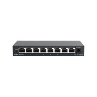 Reyee Switch da Tavolo alloggiamento in Plastica 8 porte RJ45. Velocità 10/100/1000 Mbps.Plug and Play.Tecnologia a risparmio energetico. Alimentazione: adattatore esterno DC 5 V / 1 A. Dimensioni: 124 x 60 x 24 mm.