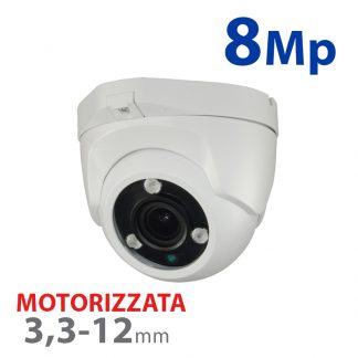 Telecamera dome 4in1 PRO 8Mp Starlight 3,3-12mm MOT IR 40m Colore bianco SONY Starvis CMOS IMX274 Risoluzione: HD8Mpx (3840x2160) a 15 FPS. Alimentazione: DC 12 V / 450 mA. Dimensioni: 95 (Fo) x 120 (Ø) mm. Colore bianco. Compatibile con: junction box SP205DM; staffe: PFA150 adattatore palo, PFA151 angolo.