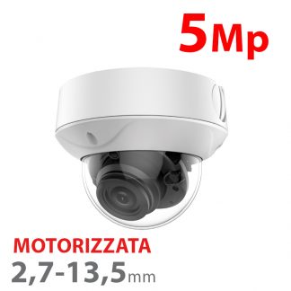 Telecamera dome HDTVI, HDCVI, AHD e Analogica Gamma ULTRA, 5Mp/4Mp 4 in 1 (HDTVI / HDCVI / AHD / CVBS) 1/2.8" Sony© IMX335+FH8556. Lente Motorizzata 2.7~13.5 mm. IR LEDs Array autonomia 40 m WDR 120dB. Alta sensibilità Super Starlight. Alimentazione: DC 12 V / 1000 mA max. Dimensioni: 280 (P) x 60 (L) x 80 (H) mm. Diametro della base: 4 viti 70x70 mm. Compatibile con: SP205DM, SP205DMG junction box; PFA150 staffa da palo; PFA151 staffa ad angolo.