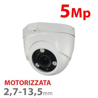 Telecamera Dome X-Security 5 Mp HDTVI, HDCVI, AHD e CVBS, 1/2.7" CMOS Starlight / 0.005 Lux Color. Ottica Motorizzata Autofocus 2.7~13.5 mm, IR LED Array portata 30 m, WDR 120dB | IP67. Alimentazione: DC 12 V / 8.8W max. Dimensioni: 88.9 (P) x 122 (Ø) mm. Compatibile con: PFB203W, PFB203W-B staffa a parete; PFA152-E staffa da palo; PFA137, PFA137-B junction box; PFA200W custodia protettiva; PFB200C supporto.