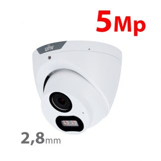 Telecamera turret 5 Mp (2880x1620), Gamma Easy, 1/2.7" Progressive Scan CMOS. Ottica 2.8 mm. LightHunter. Smart IR portata 40 m, IP67. Microfono integrato. Alimentazione: DC 12 V / 3.4 W. Dimensioni: Φ 66 mm x 154 mm (H).
