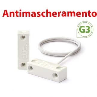 Contatto magnetico a vista ANTIMASCHERAMENTO BIANCO con cavo 2mt al CENTRO del sensore. Distanza di lavoro su ferro: 14mm, su altri materiali: 15mm. Brevetto MAGNASPHERE. Alta tolleranza. Tamper passante. Installabile in esterno. Scocca in ABS. Montaggio in linea o ad angolo retto senza necessità di staffe accessorie. Certificazione EN50131-2-6 grado 3 classe IV. Dimensioni magnete e contatto LxHxP 50x15x15mm. Il prezzo si riferisce al singolo contatto. Venduto in confezione da 5 pezzi.
