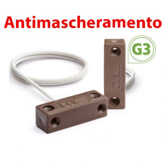Contatto magnetico a vista ANTIMASCHERAMENTO MARRONE con cavo 2mt al CENTRO del sensore. Distanza di lavoro su ferro: 14mm, su altri materiali: 15mm. Brevetto MAGNASPHERE. Alta tolleranza. Tamper passante. Installabile in esterno. Scocca in ABS. Montaggio in linea o ad angolo retto senza necessità di staffe accessorie. Certificazione EN50131-2-6 grado 3 classe IV. Dimensioni magnete e contatto LxHxP 50x15x15mm. Il prezzo si riferisce al singolo contatto. Venduto in confezione da 5 pezzi.