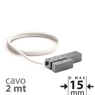 Sensore a vibrazione + contatto magnetico GRIGIO con cavo 2mt. Distanza di lavoro 15mm (installazione in piano). Brevetto MAGNASPHERE. Installazione a vista SENZA VINCOLI di posizionamento. Tamper passante. Scocca in Tecnopolimero rinforzato in fibra di vetro. Tappi anti rimozione. Raggio di azione massimo su muratura: 1,5mt, su infissi/grate: 1,75mt. Dimensioni sensore LxHxP 84x22x17mm, dimensioni magnete LxHxP 34x14x17mm. Il prezzo si riferisce al singolo sensore. Venduto in confezione da 2 pezzi.