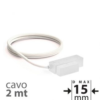 Sensore a vibrazione + contatto magnetico BIANCO con cavo 2mt. Distanza di lavoro 15mm (installazione in linea) Brevetto MAGNASPHERE. Installazione a vista SENZA VINCOLI di posizionamento. Tamper passante. Scocca in Tecnopolimero rinforzato in fibra di vetro. Tappi anti rimozione. Raggio di azione massimo su muratura: 1,5mt, su infissi/grate: 1,75mt. Dimensioni sensore LxHxP 84x22x17mm, dimensioni magnete LxHxP 34x14x17mm. Il prezzo si riferisce al singolo sensore. Venduto in confezione da 2 pezzi.