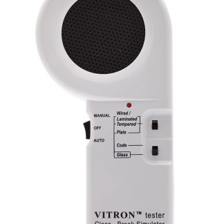 Tester per prova VITRON rilevatore acustico rottura vetro. Genera il rumore di diversi tipi di vetri che si rompono. Alimentazione batteria alcalina 9V.