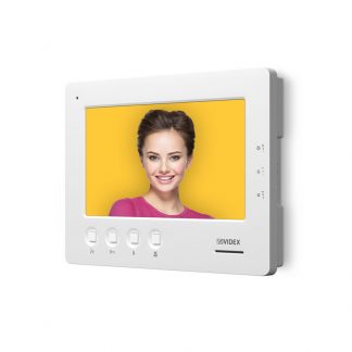 Videocitofono vivavoce con monitor a colori LCD TFT da 7” HD per il Sistema Digitale Videx VX2300 bus 2 Fili. Serie 6700, display 7", 4 pulsanti. "Servizio", "Privacy/Attivazione relè di Bus/Commutazione telecamera/Rifiuto chiamata", "Apri porta/Chiamata intercomunicante", "Risposta/OFF/Auto-accensione/PTT". Touch screen capacitivo multi touch. Memoria Video 100 immagini Videoclip (15s) disponibile con MicroSD3. Montaggio in superficie, finitura bianco satinato, supporto da tavolo Art. 67931. Dimensioni: 200 x 150 x 27 mm (L x H x P).
