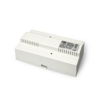 Alimentatore per piccoli sistemi con un posto esterno e un massimo di 20 citofoni o videocitofoni. VX2300, max 42 utenti. Voltaggio in ingresso 230Vac 50Hz. Voltaggio in uscita 32 Vdc 0.8 A. Contenitore DIN tipo A 9 moduli. Montaggio su barra DIN o direttamente a parete. Dimensioni (mm) 157.5x105x65.