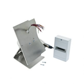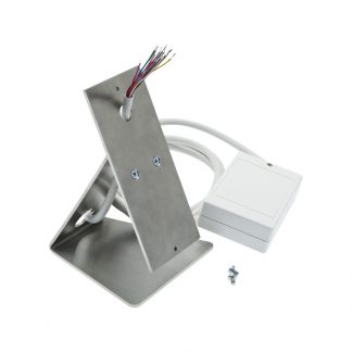 Base da tavolo per citofono serie 5000.Kit da tavolo per citofoni vivavoce Serie 5000 completo di cavo di connessione. La base è in ACCIAIO INOX spazzolato dallo spessore di 3 mm. Dimensioni: 116 X 169 X 120 mm.