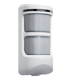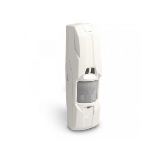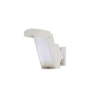 Rivelatore passivo d’infrarossi per esterno a doppio fascio con antimascheramento e microonde. Portata m 12, 180°. Alimentazione da 9.5 -18Vcc, assorbimento: 24mA a 12Vcc. Fissaggio alto: m 2.0, fissaggio basso: da m 0.8 a m 1.2.