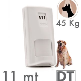 DT1000P è un sensore doppia tecnologia (MW + IR) con funzione PET IMMUNITY dal funzionamento semplice e dalla portata operativa di 6 o 12 metri. Si caratterizza per un design estremamente compatto che lo rende adatto ad una molteplicità di ambienti, soprattutto di tipo residenziale e civile.DT1000P è in grado dicriminare la presenza di animali di piccola-media taglia da quella di un individuo. L’impiego di un sensore PIR digitale garantisce un’elevata immunità ai disturbi e una precisa rivelazione delle condizioni di allarme. Il sensore IR è dotato di una lente FRESNEL con protezione dalla luce bianca mentre la sezione MW è provvista di un’antenna planare DRO a basso assorbimento. Inoltre l’adozione della completa gestione a microprocessore consente un’analisi accurata dell’ambiente, utilizzando sofisticati algoritmi di calcolo. Il set up del sensore è possibile attraverso dei dipswitch interni. Dimensioni: L 54 x H 82 x P 44 mm, 83 g. Assorbimento: Stabilizzazione al power on: 18 mA, A riposo: 11 mA, In allarme: 15 mA. Alimentazione: 12 V (7,5 - 15 V).