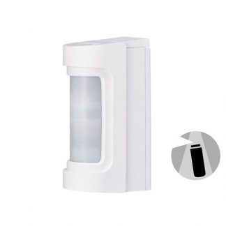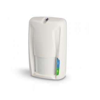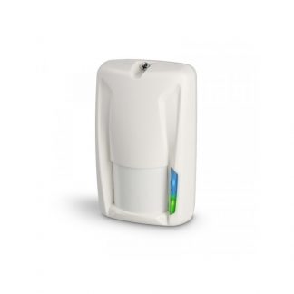 Sensore a doppia tecnologia da interno con antimask software completo di snodo. Indicato in installazioni dove si necessita avere una rilevazione immune da falsi allarmi. Si avvale di due tecnologie: infrarosso e microonda. Possiede una funzione “Warning” che dopo 50 rilevazioni segnala l’anomalia tramite il LED. Grado di protezione IP40. Disponibile bianco. Alimentazione: da 10 a 16Vcc, assorbimento: 34mA, copertura: 15m - angolo di apertura 115° a 25°C, frequenza MW: 10,525GHz, uscite: Allarme + Switch antisabotaggio + AC (Warning). Dimensioni max: 120 x 60 x 45 mm.