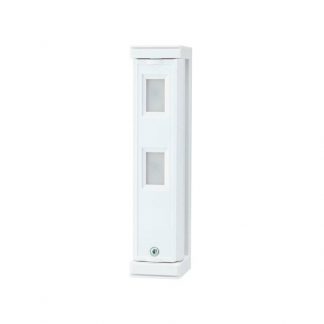 Rivelatore passivo d’infrarossi per esterno a doppio fascio con antimascheramento e microonde. Portata m 12, 180°. Alimentazione da 9.5 -18Vcc, assorbimento: 24mA a 12Vcc. Fissaggio alto: m 2.0, fissaggio basso: da m 0.8 a m 1.2.