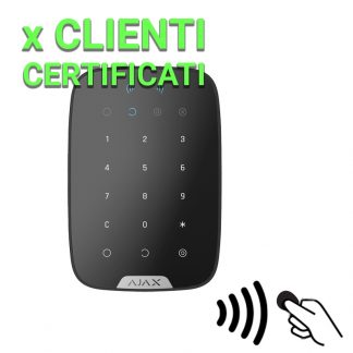 Tastiera indipendente con lettore. Alimentazione 4 pile Panasonic AA 1.5 V. Bidirezionale. Senza fili 868 MHz Jeweller. Armati, parziali armati, disarmati ed emergenza. Certificato grado 2. Dimensioni: 165 (H) x 113 (L) x 20 (P) mm. Colore nero.