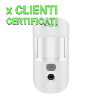 Rilevatore con fotoverifica, foto su richiesta - Ajax Superior. Staffa con vite di fissaggio. Alimentazione 2 pile CR123A 3.0 V Panasonic. Senza fili 868 MHz Jeweller. Range di rilevamento 12 m e risoluzione VGA. Certificato grado 2. Compatibile con: Hub 2 e Hub 2 Plus. Dimensioni (senza staffa) 135 (H) x 70 (L) x 60 (P) mm. Colore bianco.