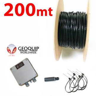 Kit composto da cavo speciale GDALPHA di lunghezza 200mt, mini analizzatore GDMA-1 IP66 120 x 122 x 80 mm, unità di fine linea e fascette per esterno resistenti all'UV. Fissato su recinzioni a rete ne rileva il taglio e lo scavalcamento (altezza di copertura 3mt), fissato sui supporti dei pannelli solari rileva tentativi di effrazione (taglio, svitamento bulloni ecc.). Il sistema, brevettato, evita falsi allarmi pur mantenendo elevata sensibilità. Uscita allarme: relé allo stato solido optoisolato. Uscita manomissione: relé allo stato solido optoisolato. Portata contatti: a 350V ad/cc 100mA ac/dc 600mW ac/dc. Protezione sovratensioni. Led di allarme verde a riposo, rosso in allarme. Led di tamper verde a riposo, rosso in allarme. Alimentazione 10,5...24 Vcc. 25mA.