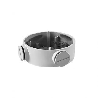 Scatola di giunzione per telecamere dome. Per esterni. Installazione a tetto o parete, Colore bianco. Dimensioni 43.8 (H) x 115.4 (Ø) mm.