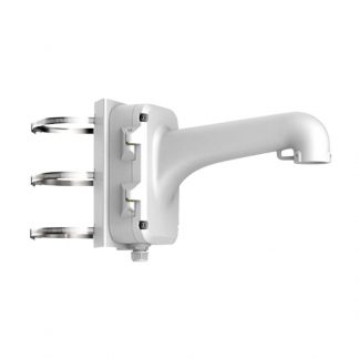 Supporto a palo per telecamere dome motorizzate. Adatto per esterni, pin cavo, lega di alluminio e acciaio, colore bianco. Diametro palo da 67 a 127 mm. Compatibile con Hikvision. Dimensioni: 240 x 206,8 x 465 mm.