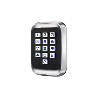 Controllo accessi autonomo, accesso con tastiera e EM RFID, uscita relè campanello d'allarme, Wiegand 26. Controllo del tempo. Adatto per esterni IP65. Accesso per scheda EM e/o password. Uscita relay NO/NC e allarme. Tastiera e custodia in metallo, controller integrato (tasto, campanello e relè), controllo tempi di apertura, chiusura e allarme. Alimentazione: DC 12V 60mA max. Dimensioni: 26 (P) x 81 (L) x 118 (H) mm.