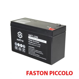 Batteria ricaricabile con faston piccolo. Tecnologia piombo-acido AGM. Voltaggio 12 V, capacità 9 Ah. Dimensioni: 100 x 151 x 65 mm / 2570 g. Per backup o uso diretto. Confezione da 8 pz.