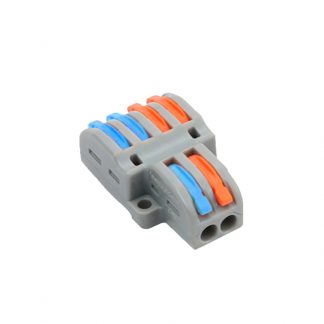 Connettore cavo Safire 1 Ingressi e 4 Uscite. Calibro del cavo 28 ~ 12AWG. Lunghezza striscia 10mm 10 unità. Colore: Grigio + arancione. Dimensioni: 26.6 (l) x 14.5 (H) x 20.5 (P) mm.