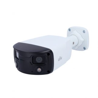 Telecamera Bullet IP Gamma Prime, risoluzione 8 Mp (5120x1440). Doppia ottica 2 x 4 mm. Visione panoramica 180º Colorhunter, luce bianca 30 m | Color retrieval, SIP | UMD | Conteggio persone | MicroSD | IP67, Allarmi | Audio | 2 microfoni e altoparlanti | PoE. Alimentazione: DC 12 V / 13 W: PoE IEEE802.3af. Dimensioni: 273 (P) × 130 (L) × 76 (H) mm. Dimensioni della base: Base quadrata 76x76 mm / Ø tra viti 74 mm / 4 viti. Compatibile con: UV-TR-UP06-C-IN, UV-TR-UP06-B-IN staffa da palo; UV-TR-JB06-A-IN, UV-TR-JB07-D-IN junction box;