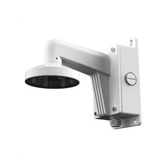 Staffa a parete con junction box, adatta per esterni. Colore bianco, compatibile con Hiwatch Hikvision. Pin cavo. Dimensioni: 243 x 136 x 290 mm.