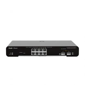 Ruijie Switch Cloud Managed L3 8 porte Hi-PoE RJ45 + 2 porte SFP+ 8 Porte Multi-Gigabit + 2 Porte 10G, VLAN/Port Isolation/STP/RSTP/ACL, DHCP Snoop/IGMP Snoop. Montaggio su rack. Alimentazione: AC 100 V - 240 V. 10A. Dimensioni: 300 x 233 x 43.6 mm.