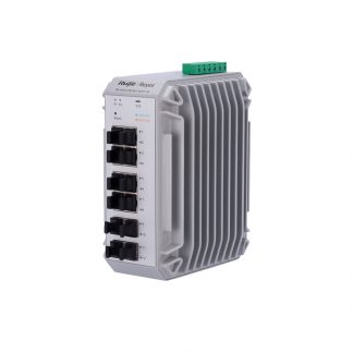 Reyee Switch Industriale PoE Cloud Layer 2 8 porte PoE+ Gigabit + 4 porte SFP Gigabit, 30W per porta 802.3af/at / Massimo 240W. Static LAG/DHCP Snooping/IGMP Snooping/Port Mirroring, VLAN/Loop Prevention/STP/RSTP/ACL/Watchdog. Montaggio su guida DIN. Alimentazione non inclusa 12-56VDC / 7A. Dimensioni: 85 x 132 x 165 mm.
