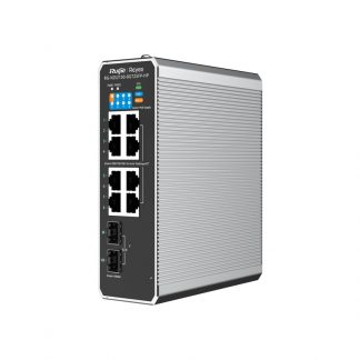 Reyee Switch Industriale PoE Cloud Layer 2, 8 porte PoE+ Gigabit + 2 porte SFP Gigabit, 30W per porta 802.3af/at / Massimo 240W. Static LAG/DHCP Snooping/IGMP Snooping/Port Mirroring, VLAN/Loop Prevention/STP/RSTP/ACL/Watchdog. Montaggio su guida DIN. Alimentazione non inclusa 12-56VDC / 7A. Dimensioni: 85 x 132 x 165 mm.