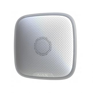Sirena per interni - (PN: 8697) Colore bianco. Certificato grado 2 - Bidirezionale - Senza fili 868 MHz Jeweller - Antenna interna distanza spazi aperti 2000 m - 81~105 dB a 1 m di distanza - Durata massima del suono 3 minuti - Luce di avviso allarme e segnale acustico di inserimento / disinserimento. È disponibile un connettore per LED esterno. Alimentazione 2 batterie CR123A 3.0 V (durata stimata 5 anni) - Dimensioni 75х76х27 mm - Peso 97 g - Comprende supporto.