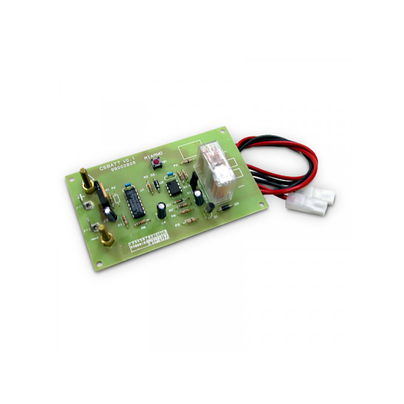 Circuito disgiuntore di batteria, impedisce la scarica irreparabile delle batterie in tampone installate nelle apparecchiature funzionanti a 12Vcc. Dim. L110xH65xP28mm.