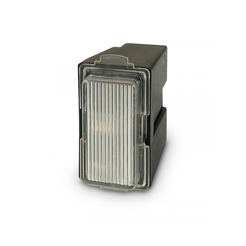 Modulo punto lucePunto luce da incasso su modulo scatola 503 adatto per illuminazione di emergenza con funzionamento manuale ed automatico, dotato di rivelatore di luminosità, connessione alla linea di alimentazione delle centrali cablate EL.MO., necessita di scheda SKLUX. Assorbimento 2 mA a riposo, 10mA in bassa luminosità, 40mA in alta luminosità, alimentazione 9-15 Vdc.