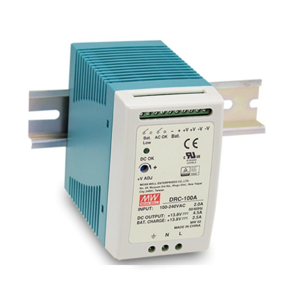 Alimentatore per montaggio su barra DIN 27,6Vcc 3,5A con carica batteria. Amperaggio carico 2,25A, amperaggio ricarica batteria 1,25A. Tensione in uscita regolabile da trimmer +/-10%. Tensione in ingresso 85…264Vac. Protezioni per corto circuito, sovraccarico, sovratensione e caricabatterie. Standard di sicurezza: UL60950-1, TUV EN60950-1. Immunità EMC: EN61000-4-2,3,4,5,6,8,11; ENV50204, EN55024. Temperatura di lavoro -30…+70°C. Dimensioni: 55x90x100mm (LxHxP) Peso 0,4Kg