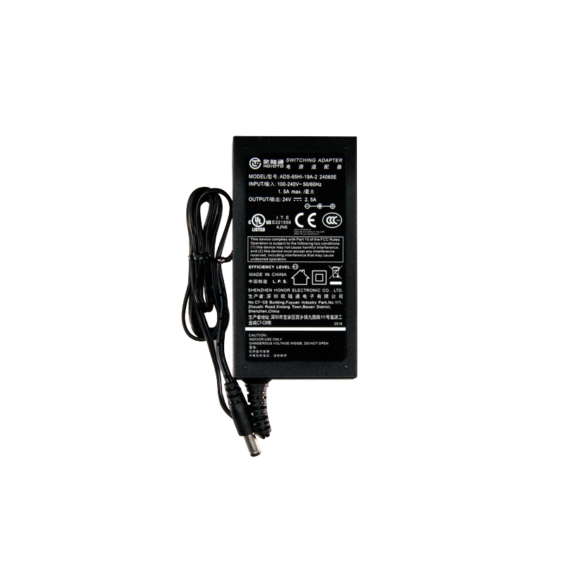 Alimentatore elettronico 24 V / 2500 mA. Dimensioni ridotte, 110 (Al) x 55 (La) x 30 (Lu) mm, 220 g. Entrata AC 100-240 V 50/60 HZ 1.5 A, uscita DC 24 V 2.5 A. Cavo di alimentazione 220 VAC incluso.