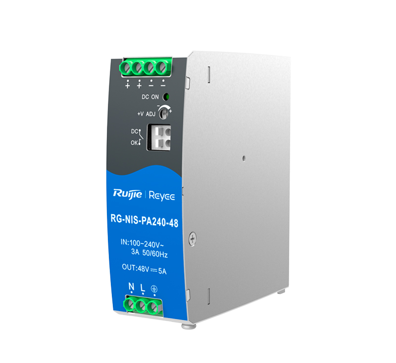 Alimentatore industriale uscita DC 48 V 5 A / 240 W, 2 uscite DC. Voltaggio in entrata 100 V ~ 240 V 128.8 (H) x 41 (L) x 110 (P) mm. Montaggio su guida DIN.