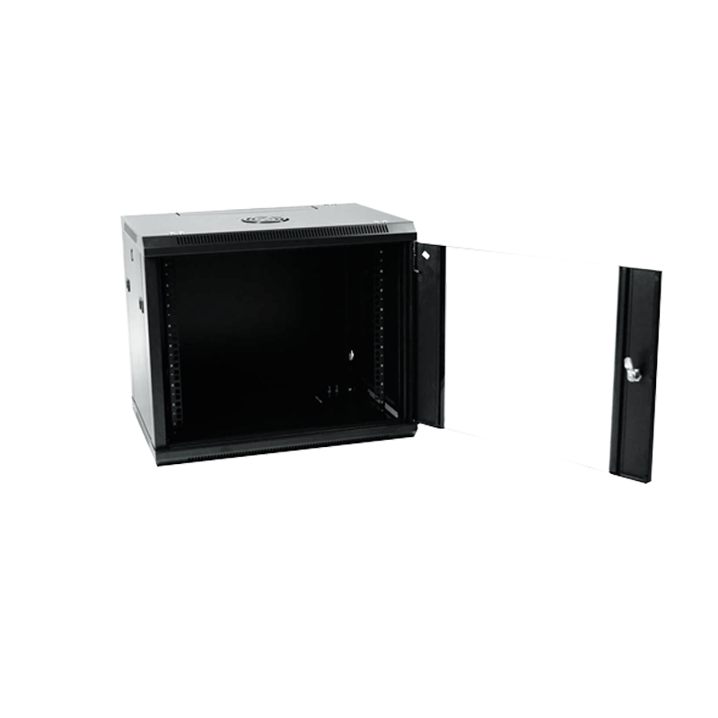 Armadio rack a parete, fino a 9U rack da 19″, fino a 100 Kg di carico, con ventilazione e passacavi. Profondità 600mm. Fabbricato in acciaio SPCC. Colore nero. Dimensioni interne: 400 x 465 x 600 mm (HxLxP).