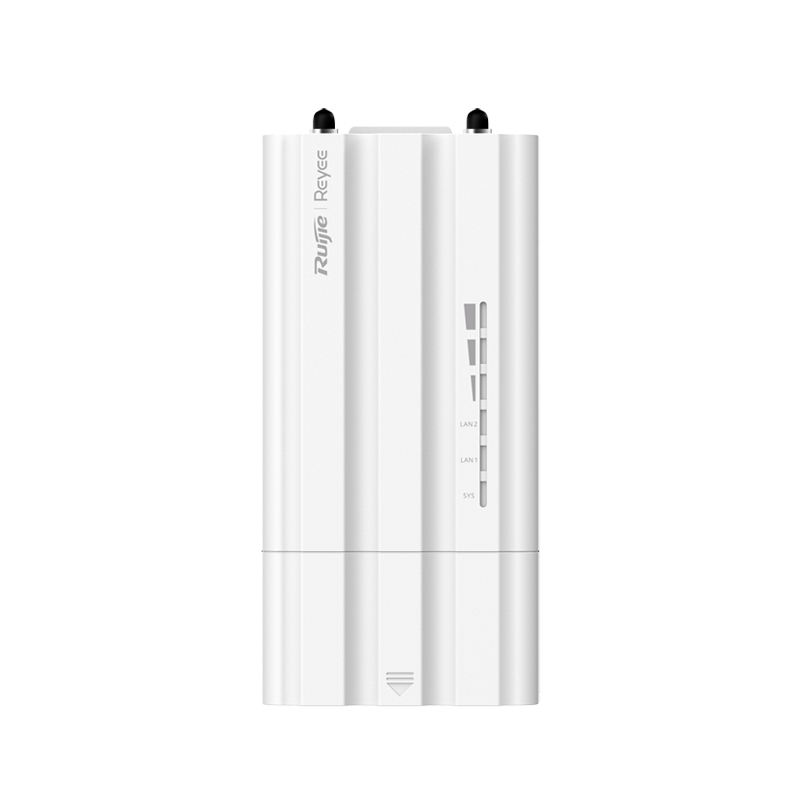 Base Station per i ponti radio Reyee. Frequenza 5.15 GHz 5.85 GHz. Protocollo Proprietario basato su TDMA, IP55, adatto per esterni. 2x Connettori SMA per il collegamento dell’antenna esterna. Alimentazione: 24 VDC non standard POE / 12vDC. Dimensioni: 200 x 98.5 x 29mm.