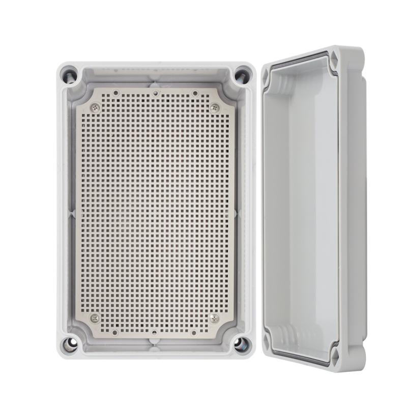 Box ABS, dimensioni 280 x 380 x 130 mm. Piastra di montaggio rimovibile 250 x 350 [+/-2 mm] con perforazione quadrata. Serratura con bulloni di plastica – 4 pz. IP66. Guarnizione installata nel coperchio dell’involucro. Colore grigio chiaro.