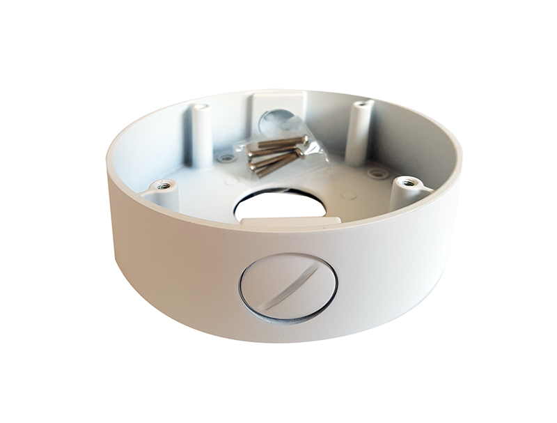 Box di giunzione cilindrico in metallo compatibile con telecamera Dome. Da utilizzare in interno o al coperto (es sotto una tettoia). Passaggio cavi posteriore o laterale per connessione tubo. Viti di fissaggio telecamera a corredo. Dimensioni øxP 118x37mm.