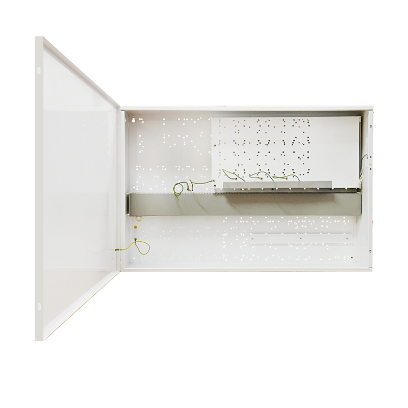 Box metallico universale, dimensioni LxHxP 845x555x180mm. Predisposizione per scheda centrale ed espansioni di varie marche esempio RISCO, Satel, Paradox Pyronix ecc ecc. SENZA TRASFORMATORE. Alloggio per batteria fino a 17Ah. 2 viti di chiusura coperchio. Tamper antiapertura e antistrappo. Predisposizione per chiusura a chiave. Distanziali parete 8mm. IP20. Conforme EN 50581:2013-03. Peso 14,8kg. Temperatura di lavoro -10…+40°C.