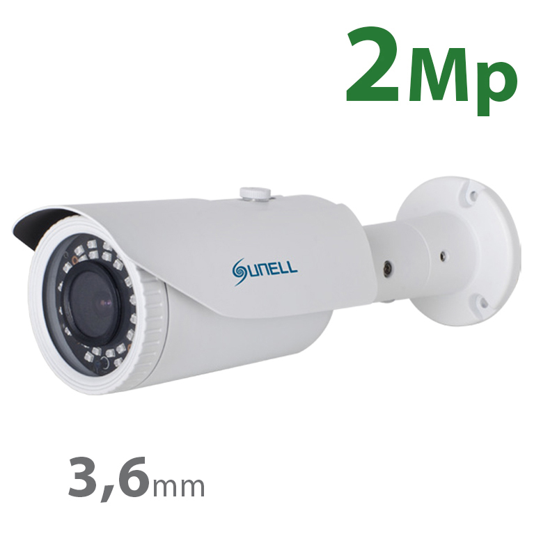 Bullet IP 2 Mp 1080 30fps Sensore da 1/2,7″ Progressive Scan CMOS. Ottica FISSA da 3.6 mm. Smart IR, 30 Led SMD IR 20-30m. 2D/3D-DNR, dWDR, ICR. H264 High/Main/Baseline e MJPEG, ONVIF, Main stream da 500Kb a 12000Kb, Sub stream da 100Kb a 6000Kb. Temperatura di lavoro -10°…+55°C. IP66. Alimentazione 12Vcc/POE 5W. Dimensioni øxP 80×277,80 mm. Peso 800g