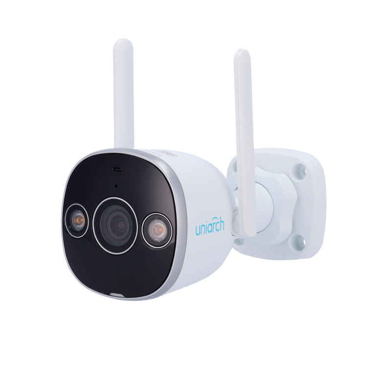 Telecamera IP Bullet Uniarch Panda 3 Megapixel, Smart Light (IR + luce bianca) | DWDR. Portata IR 20 m | Portata luce bianca 10 m. Ultra H.265 | IP67. Wifi IEEE802.11b/g/n. Microfono e altoparlante incorporato. Alimentazione: DC 12 V / 5.7 W. Dimensioni: 148 (L) x 78 (H) x 78 (P) mm.